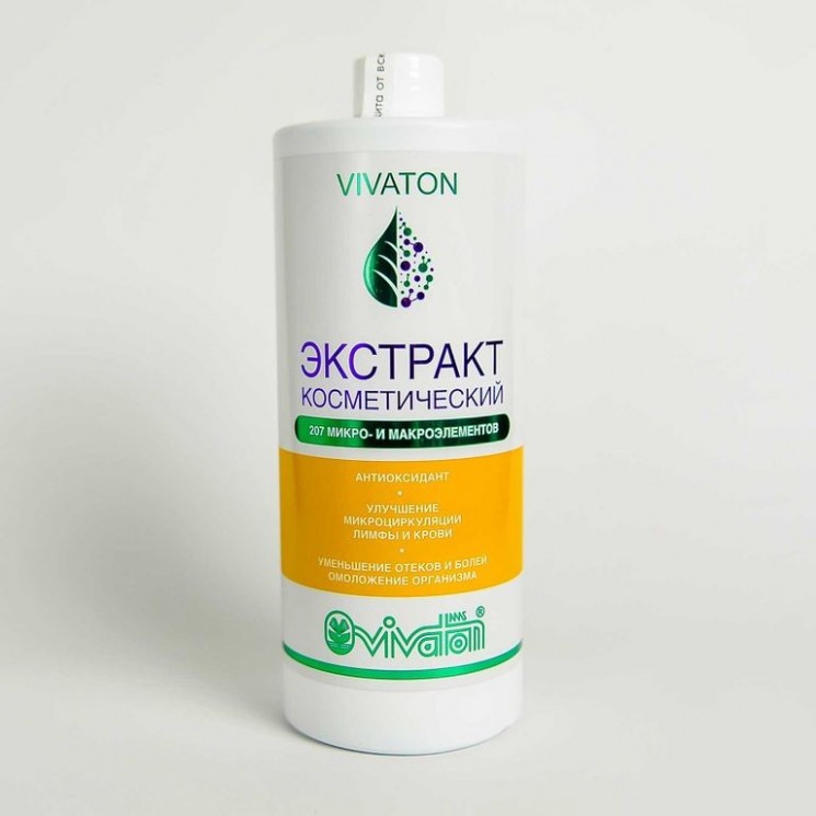 «ВИВАТОН» получен из сбора лекарственных растений. Содержит 207 компонентов (из них 33 антиоксидантных компонента): комплекс органических кислот и аминокислот, в том числе незаменимых (лауриновая, пролин, лимонная, масляная, щавелевая, аскорбиновая, глютаминовая, фолиевая, янтарная, линоленовая, яблочная и многие др.), полный комплекс витаминов (в том числе В1,В2, Е, С, В6, А, Р и холин), провитамины, фитонциды, гликозиды, сапонины, флавоноиды, каротиноиды, хатинин, лецитин, катехины, сахарозу, терпеноиды, дубильные вещества, эфирные масла, макро- и микроэлементы и другие компоненты природного происхождения, необходимые для жизнедеятельности клетки органа и всего организма в целом, человека и всего живого.